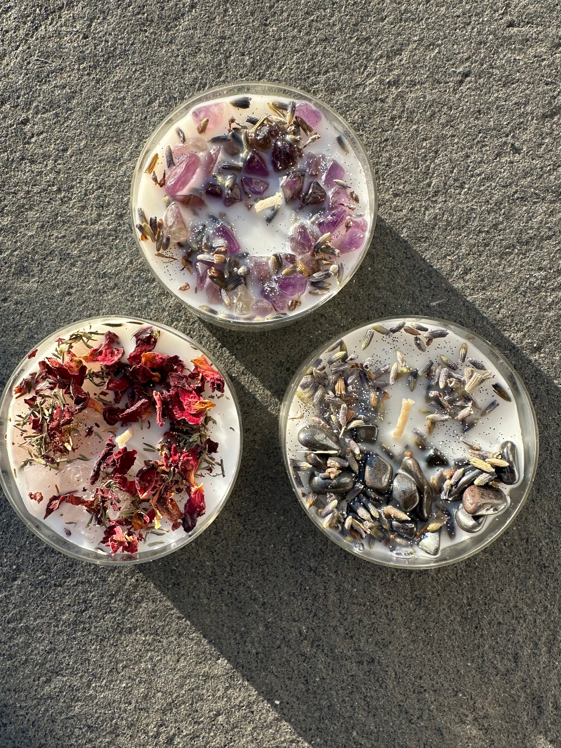 Teelicht Bundle - 3 große Kristallkerzen Teelichter Selbstliebe I Meditation I Erdung